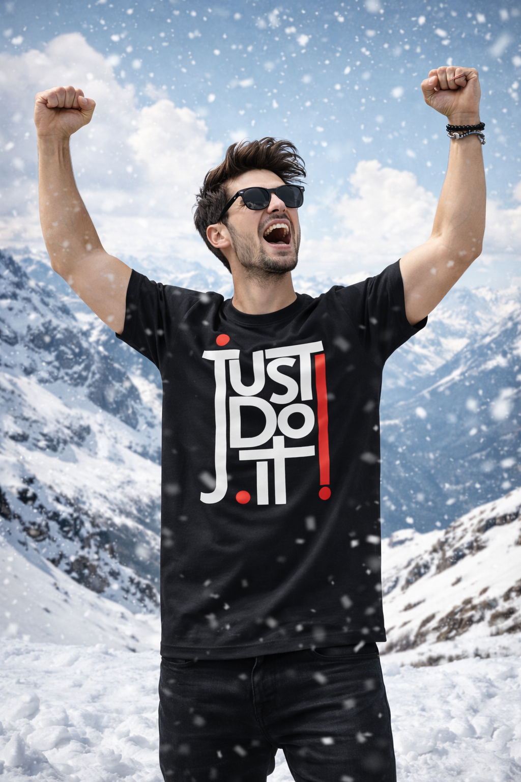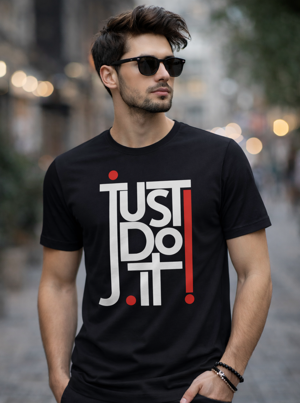 Refresh your wardrobe with this trendy “Just Do It” typography t-shirt.